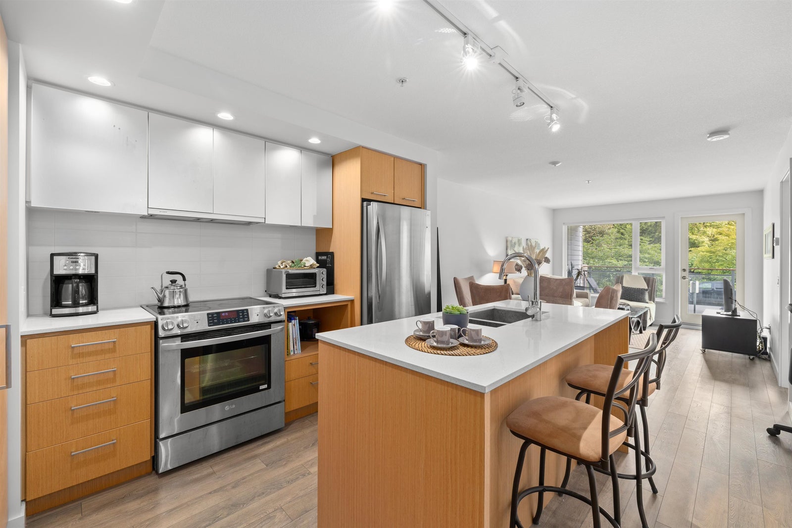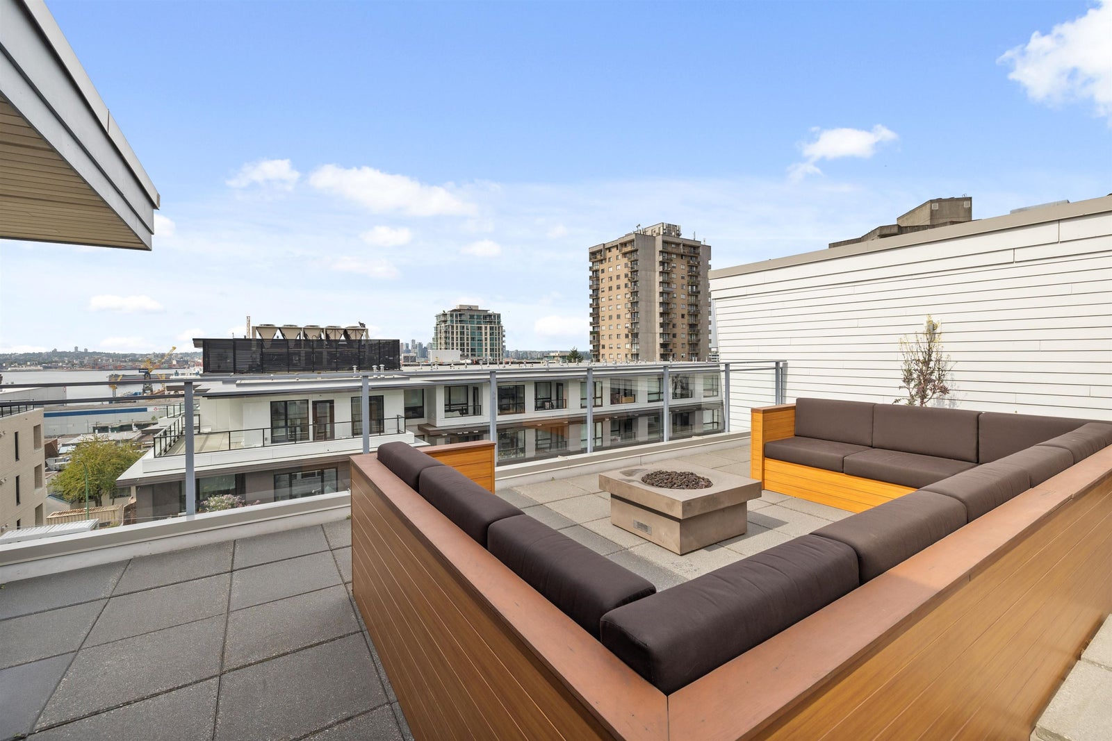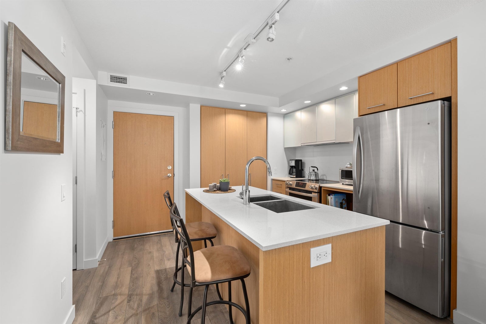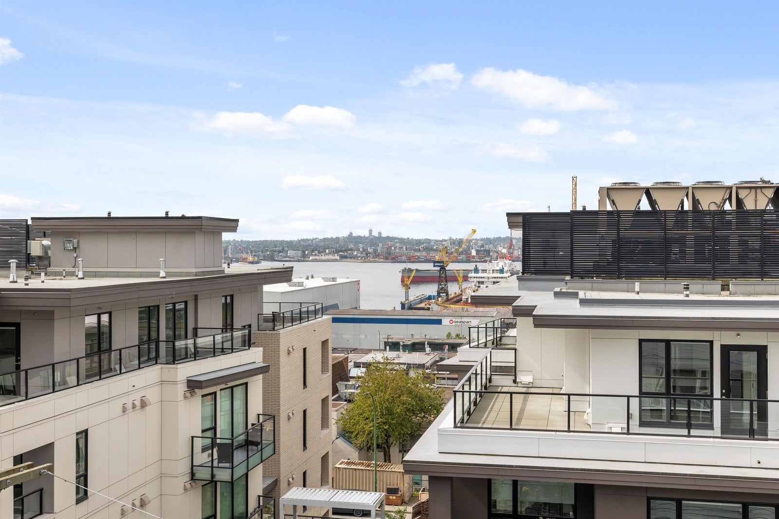 This well-kept one-bedroom, one-bathroom suite in Orizon on Third has had a single, owner since new. The plan is open and practical, with quartz kitchen counters, stainless LG appliances, in-suite laundry, and in-floor radiant heat. A covered balcony extends the living space and gives your dog or cat a spot to watch the world go by. Completed in 2014, the LEED-Gold building adds a fitness room, rooftop terrace with BBQ and fire-pit, bike storage, car-wash bay, and EV charging. Pets are welcome and the home comes with secure parking and a storage locker. Lower Lonsdale cafés, shops, and the Seabus are all a short walk away. This suite offers great value. Open Sat & Sun May 31st & June 2nd from 2 to 4 pm
