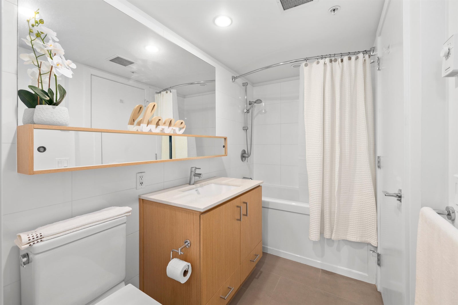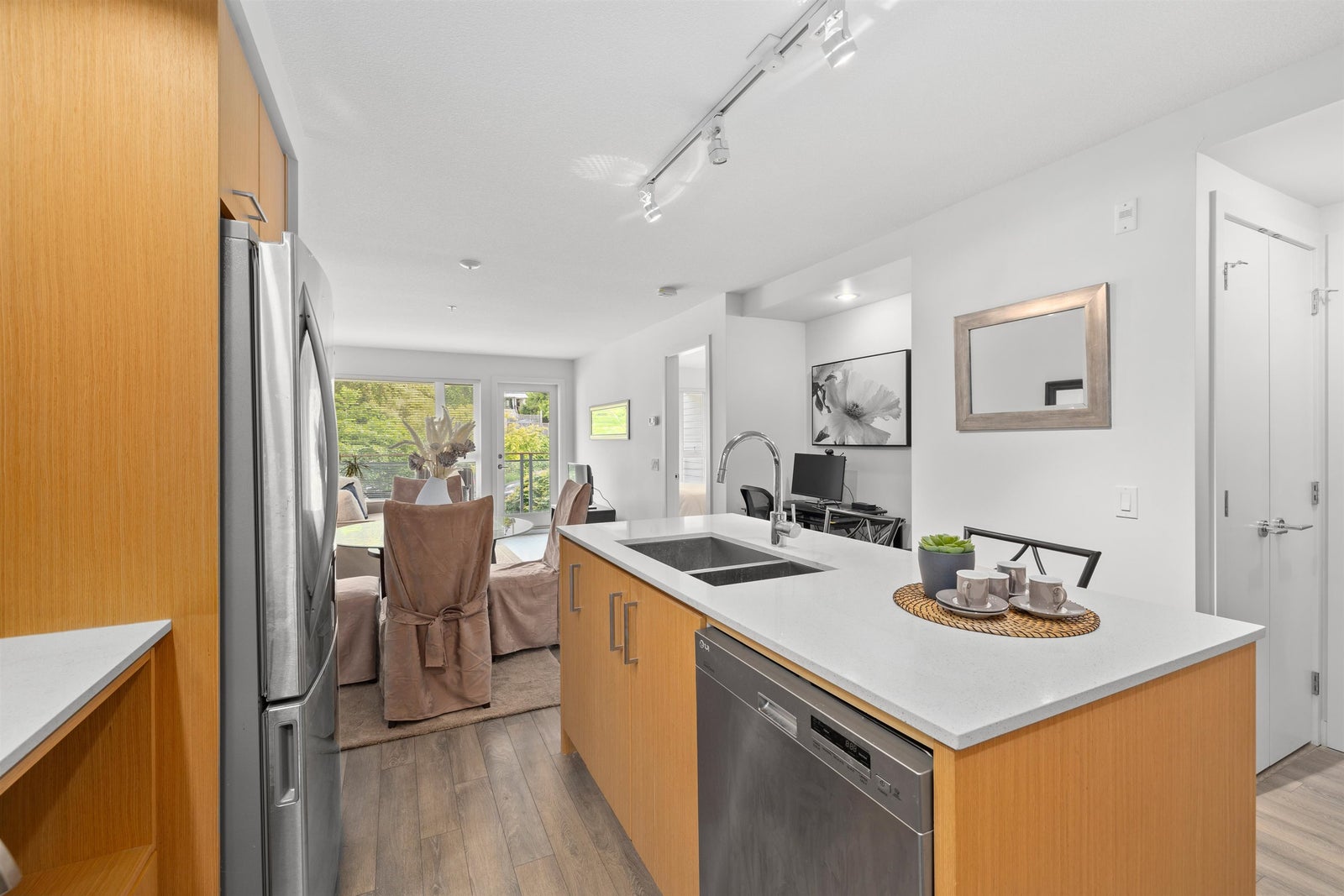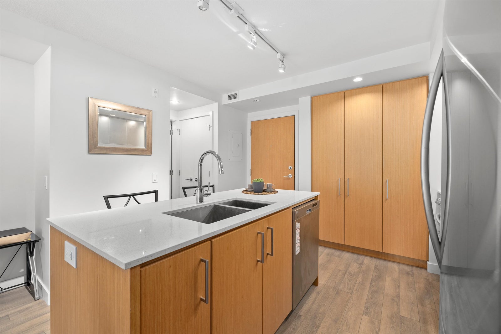 This well-kept one-bedroom, one-bathroom suite in Orizon on Third has had a single, owner since new. The plan is open and practical, with quartz kitchen counters, stainless LG appliances, in-suite laundry, and in-floor radiant heat. A covered balcony extends the living space and gives your dog or cat a spot to watch the world go by. Completed in 2014, the LEED-Gold building adds a fitness room, rooftop terrace with BBQ and fire-pit, bike storage, car-wash bay, and EV charging. Pets are welcome and the home comes with secure parking and a storage locker. Lower Lonsdale cafés, shops, and the Seabus are all a short walk away. This suite offers great value. Open Sat & Sun May 31st & June 2nd from 2 to 4 pm