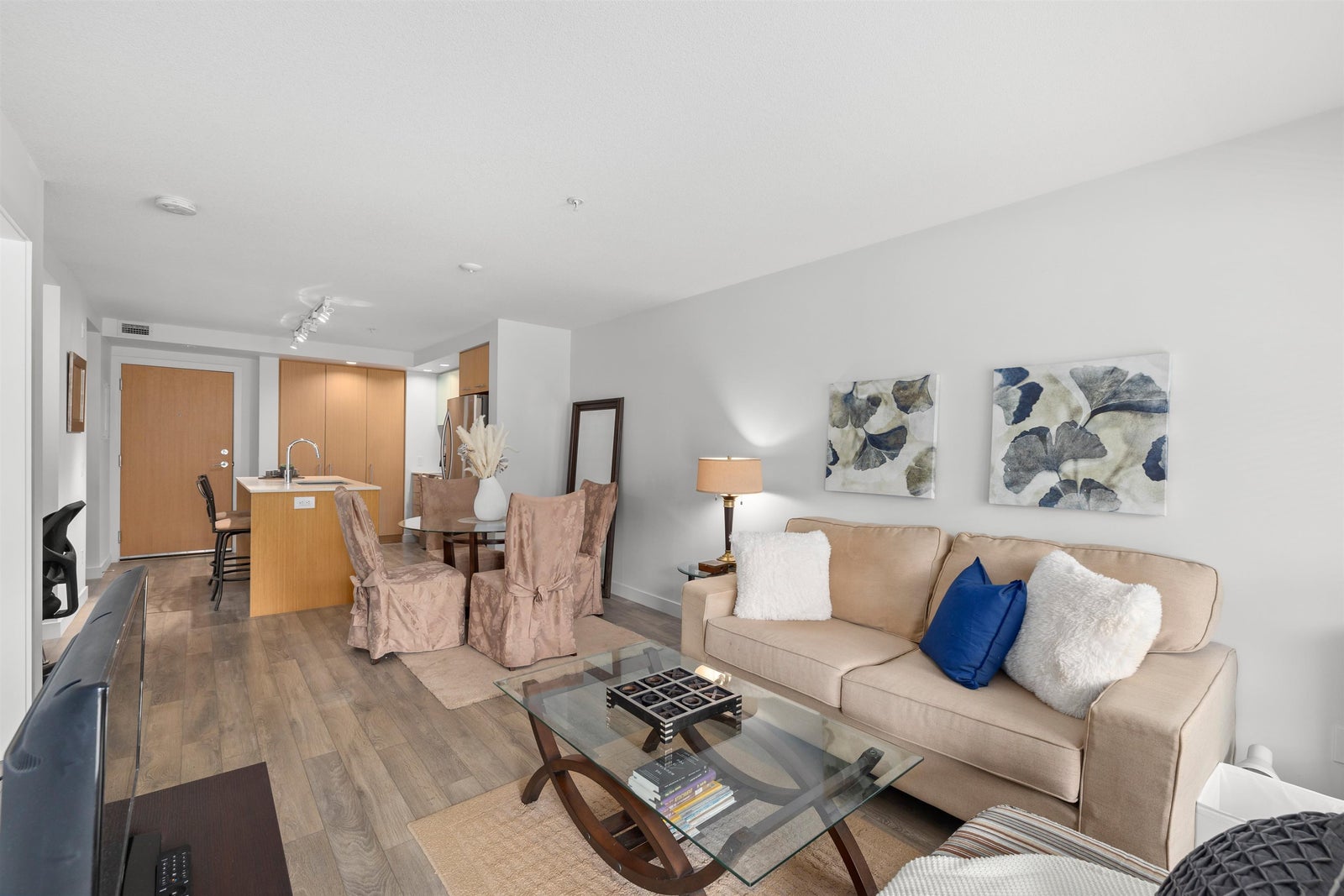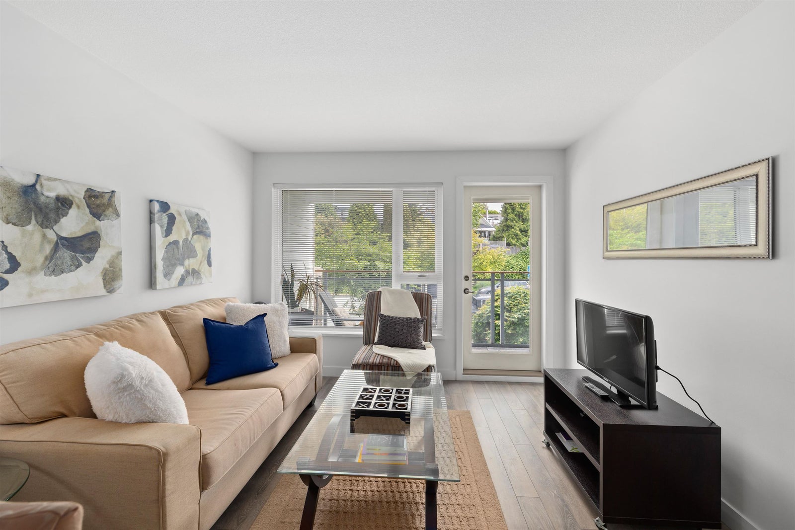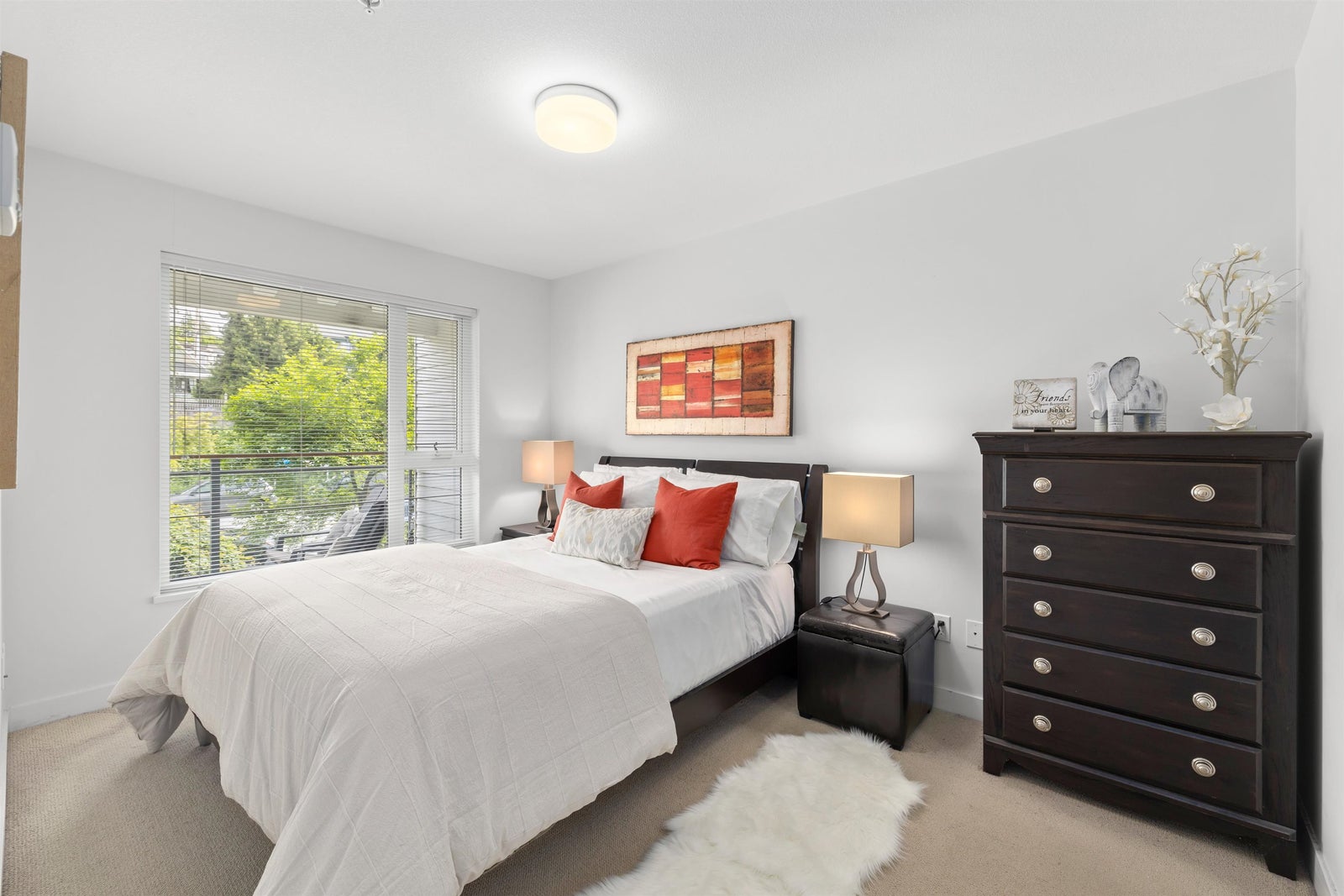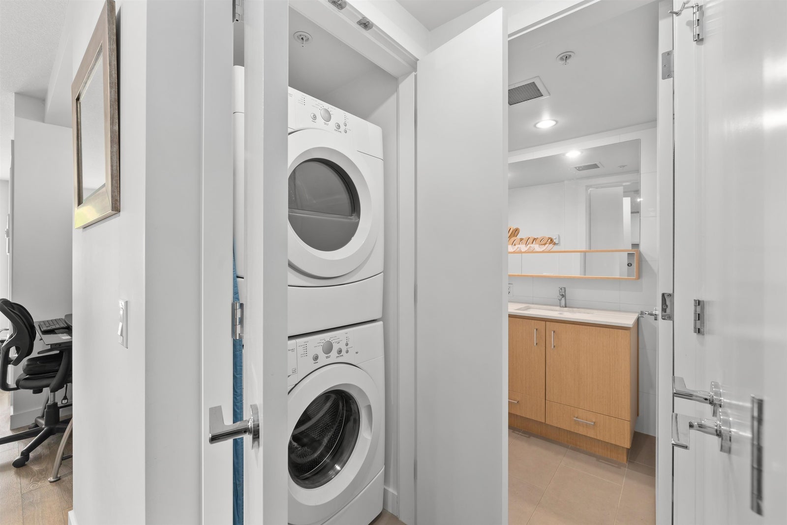 This well-kept one-bedroom, one-bathroom suite in Orizon on Third has had a single, owner since new. The plan is open and practical, with quartz kitchen counters, stainless LG appliances, in-suite laundry, and in-floor radiant heat. A covered balcony extends the living space and gives your dog or cat a spot to watch the world go by. Completed in 2014, the LEED-Gold building adds a fitness room, rooftop terrace with BBQ and fire-pit, bike storage, car-wash bay, and EV charging. Pets are welcome and the home comes with secure parking and a storage locker. Lower Lonsdale cafés, shops, and the Seabus are all a short walk away. This suite offers great value. Open Sat & Sun May 31st & June 2nd from 2 to 4 pm