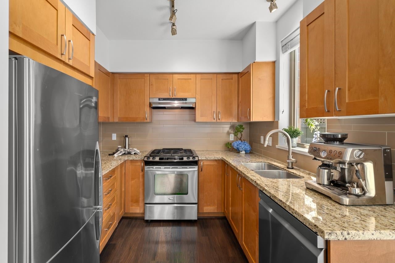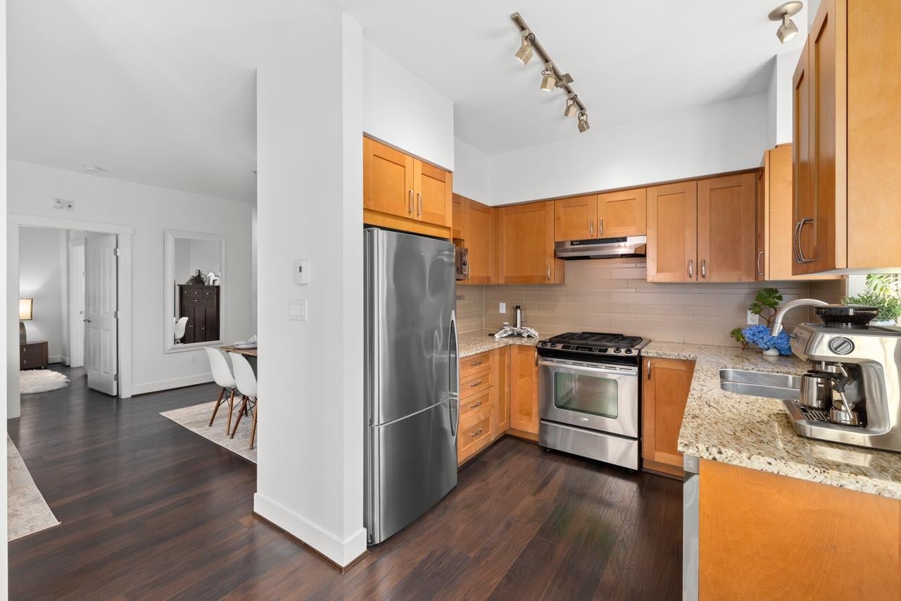Welcome to Branches by Polygon – a perfect blend of comfort and convenience in the heart of Lynn Valley. This bright and spacious 2-bedroom, 2-bathroom corner suite offers over 1,000 sq.ft. of thoughtfully designed living space. The excellent floorplan provides great separation between bedrooms, ideal for privacy. A well-appointed kitchen features a stainless steel appliance package with gas cooktop which opens to a large, manicured private patio and central courtyard, offering a peaceful extension of your living space. Bonus; this home also comes with two parking stalls! All just steps from Lynn Valley Village, transit, schools, parks, and world-class hiking and biking trails. A fantastic opportunity in a quality-built, well-managed complex. Open Sunday July 20th from 2 to 4